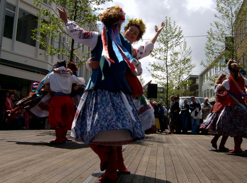 De Folkloreade Enschede speelde een nadrukkelijke rol bij de verdere ontwikkeling van Roesalka. De vereniging trad op als gastgezin voor een deelnemende groep. Meestal waren dit groepen uit de voormalige Sovjetunie. Naast de leden waren ook een flink aantal andere mensen bereid gasten op te nemen. Zij zijn betrokken geraakt bij de vereniging en legden de basis voor de vriendenkring van Roesalka. Zo ontving Roesalka in 1995 de leden van het Oekraïense Folkloregezelschap Joenist Podillia uit Chmelnitskie. Mikola Korzun, bayanist van het orkest, raakte persoonlijk bevriend met enkele leden, en die besloten hem uit te nodigen. Gedreven door zijn passie als musicus begon hij Roesalka liedjes te leren. Het meest bekende is wel Rosprahaite Glopzikonje.