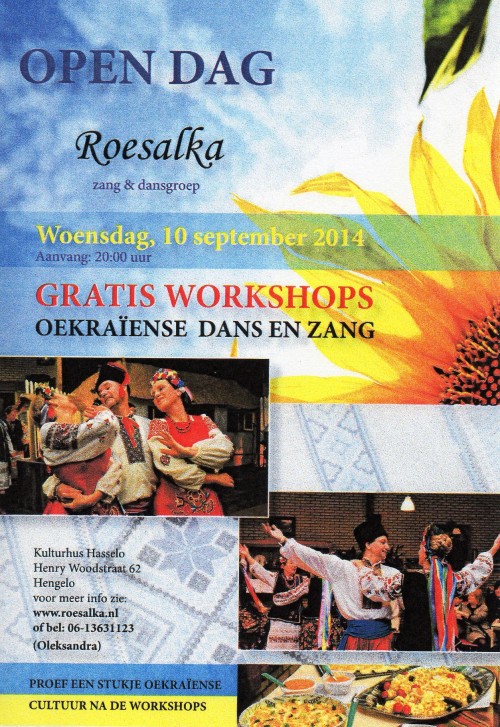 OP WOENSDAG 10 SEPTEMBER 2014 OM 20:00 UUR organiseerde Roesalka een open dag met workshops
